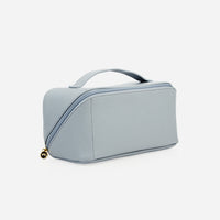 This angular case holds it all with ample space and pockets. Our favourite feature: an angled zipper allows the case to open flat so you can easily find the item you're looking for. Functional, and looks good on your vanity.